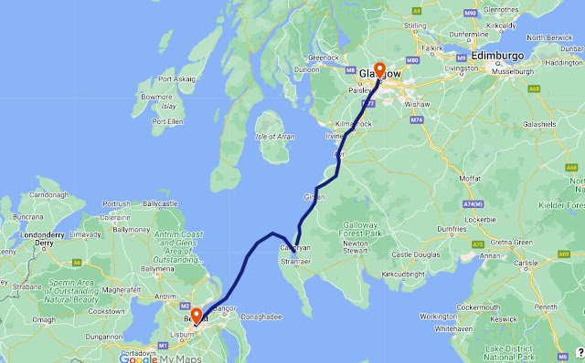 Un día antes, pude conseguir la página web, de donde se compraban los pasajes para hacer este tramo, algo curioso porque la compra del pasaje comprendía: tomar un bus en la estación de buses de la ciudad, este te iba a llevar hasta el puerto, subir a un ferry, este cruzaba el mar y al bajar en el puerto de Cairnryan, nos esperaba otro bus que nos iba a llevar hasta Glasgow. De hecho, el tramo en ferry ya no iba a ser 8 horas como hace 3 ddías, si no de solo 2 horas, luego 2 horas más en bus.